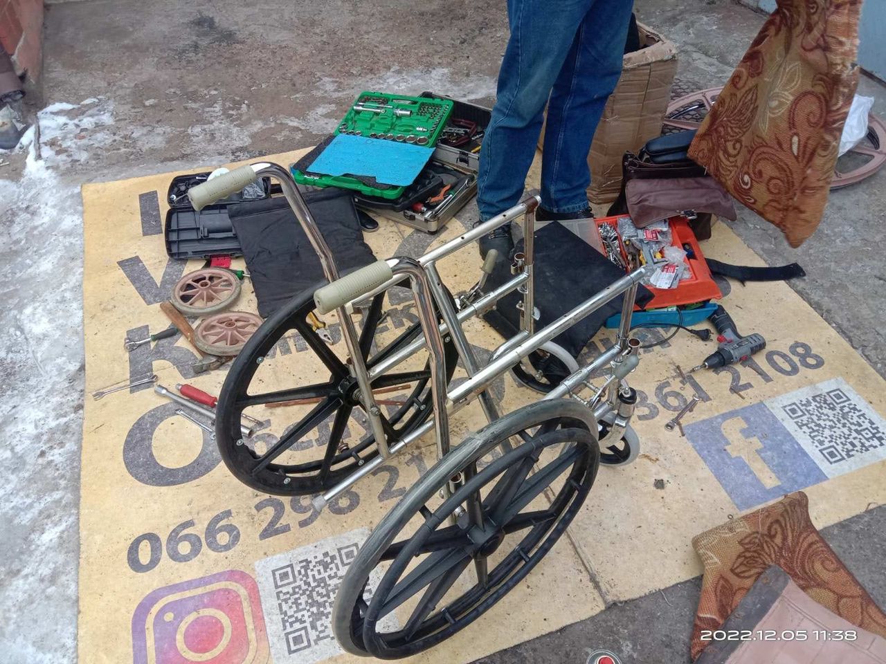 Знову нам в майстерню привезли механічного візка. Відремонтуйте, батько не може вже їздити.