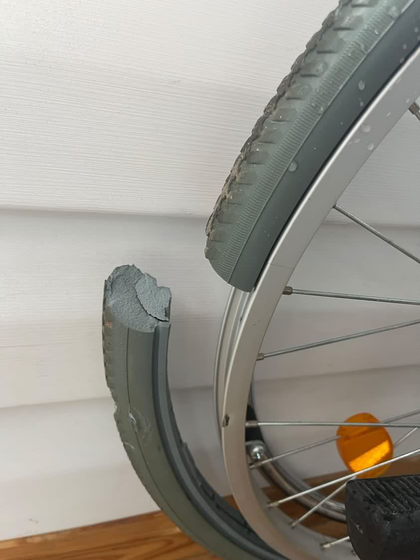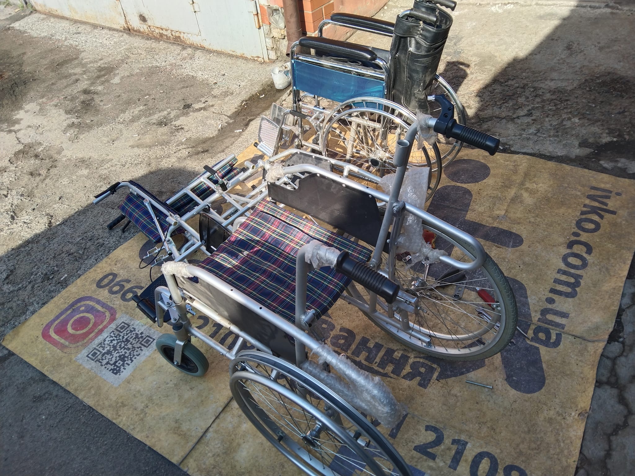Механічні інвалідні візки (Приходить фото від волонтерів на вайбер візка, треба відремонтувати колеса, гусмат такий не ремонтується вже. Поставили шини і камери. Фото поломки є. Також пару візків зробили ремонт для госпіталя.)