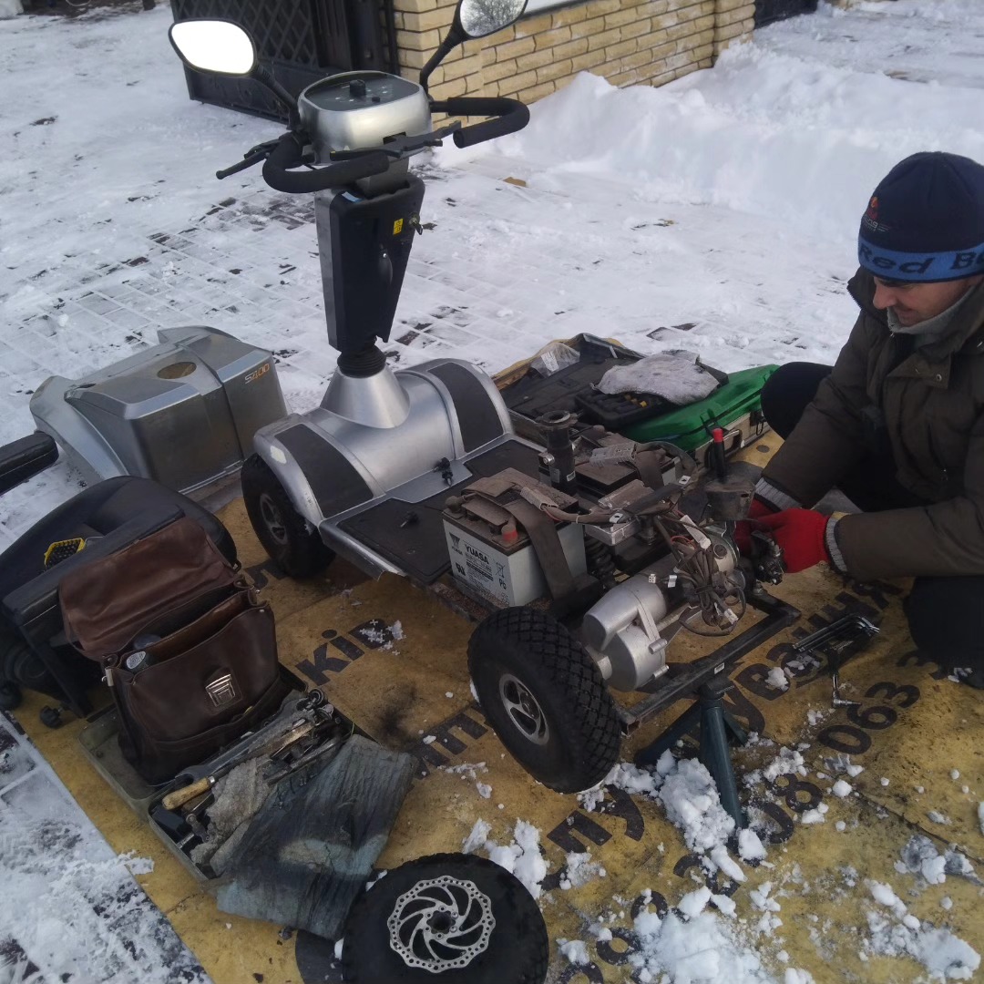 Майже місяць не писали, не було часу. Було різні ремонти, і складні і не дуже. Наші військові, наші котики, наші герої привезли нам в майстерню візки від волонтерів на запуск і ремонт для своїх побратимів. Зараз такими візками займаємося позачергово.