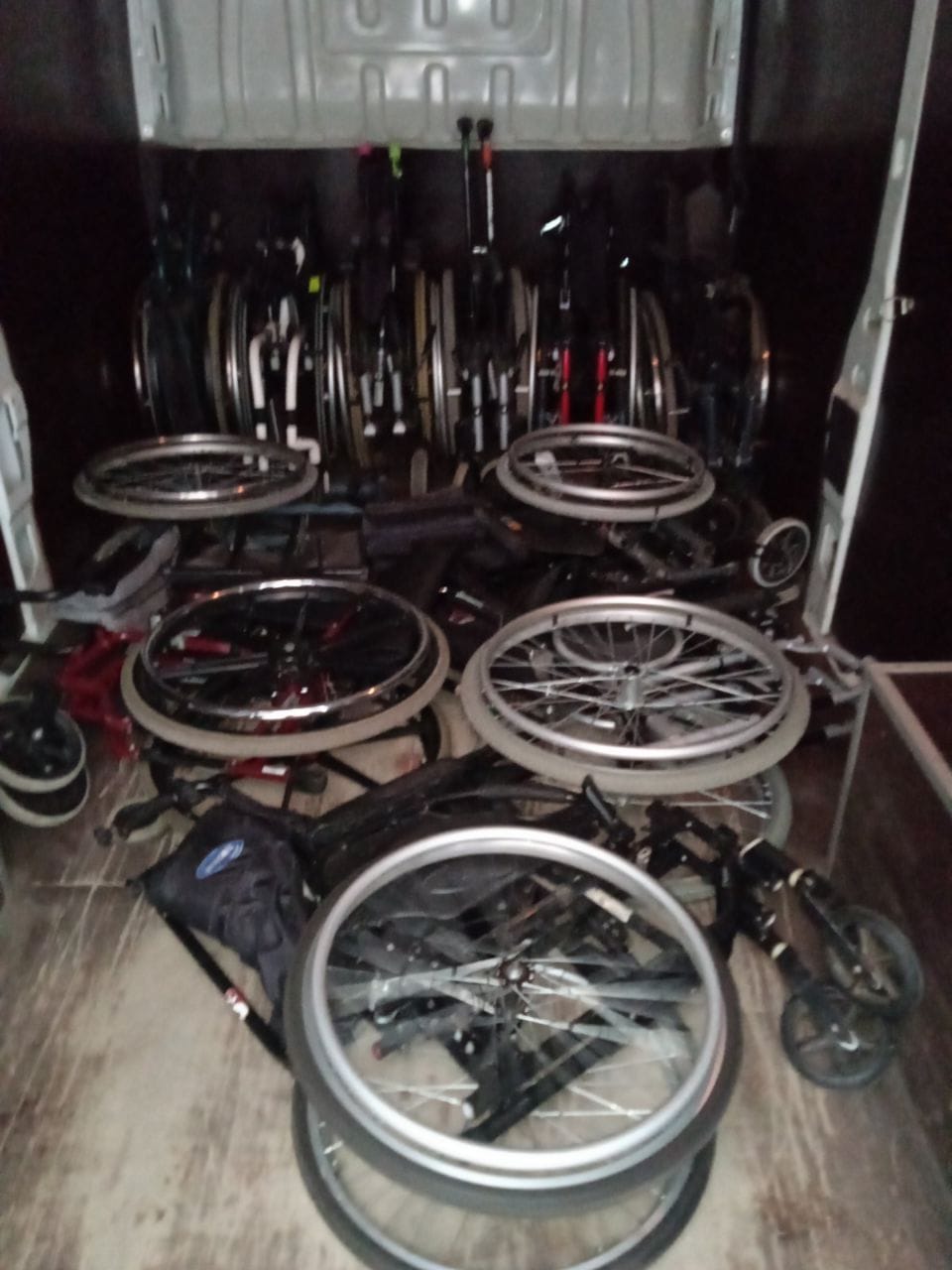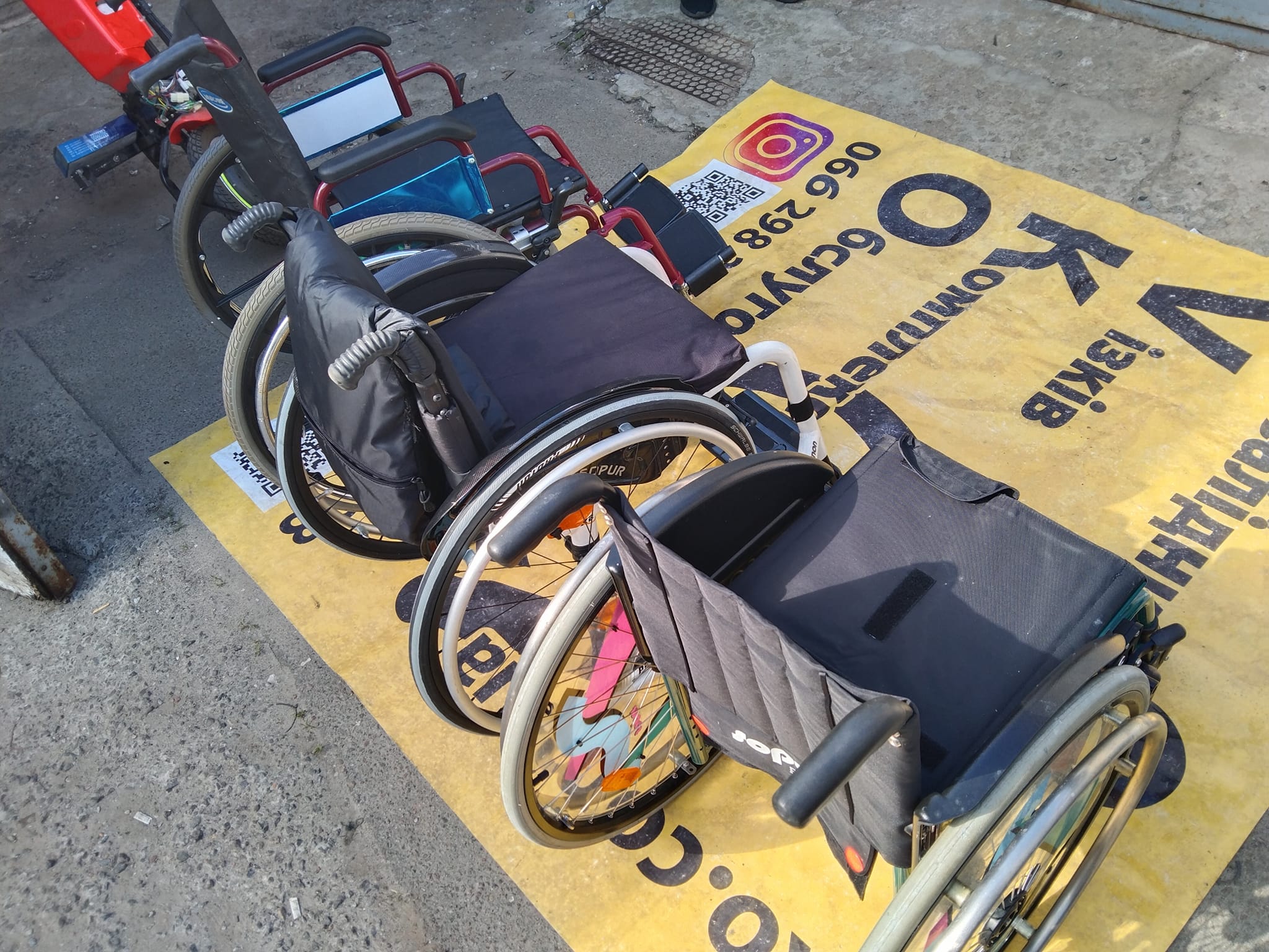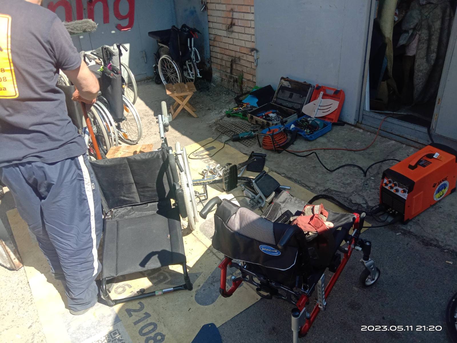 Механічні інвалідні візки (Знову на нас вийшли волонтери і попросили відремонтувати і відновити візки для госпіталя. 12 шт. Візки вже у нас. Відмили їх і працюємо. 4 шт вже відновили і віддали. Підлокітники, боковини, підніжки і кріплення, шини і колеса. Робота творча. Працюємо.)