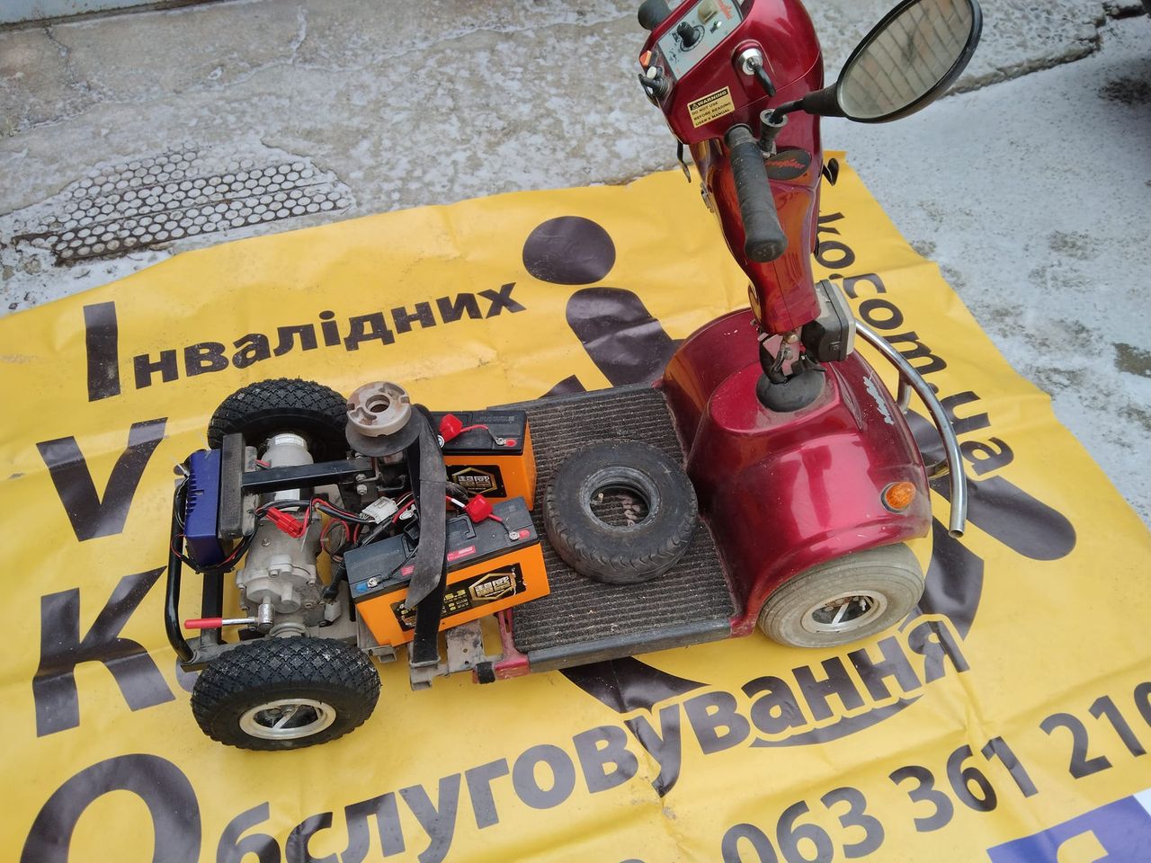 Відремонтували блок управління, джойстик керування, електродвигун і електротормоз. Також поставили нові задні шини з камерами.