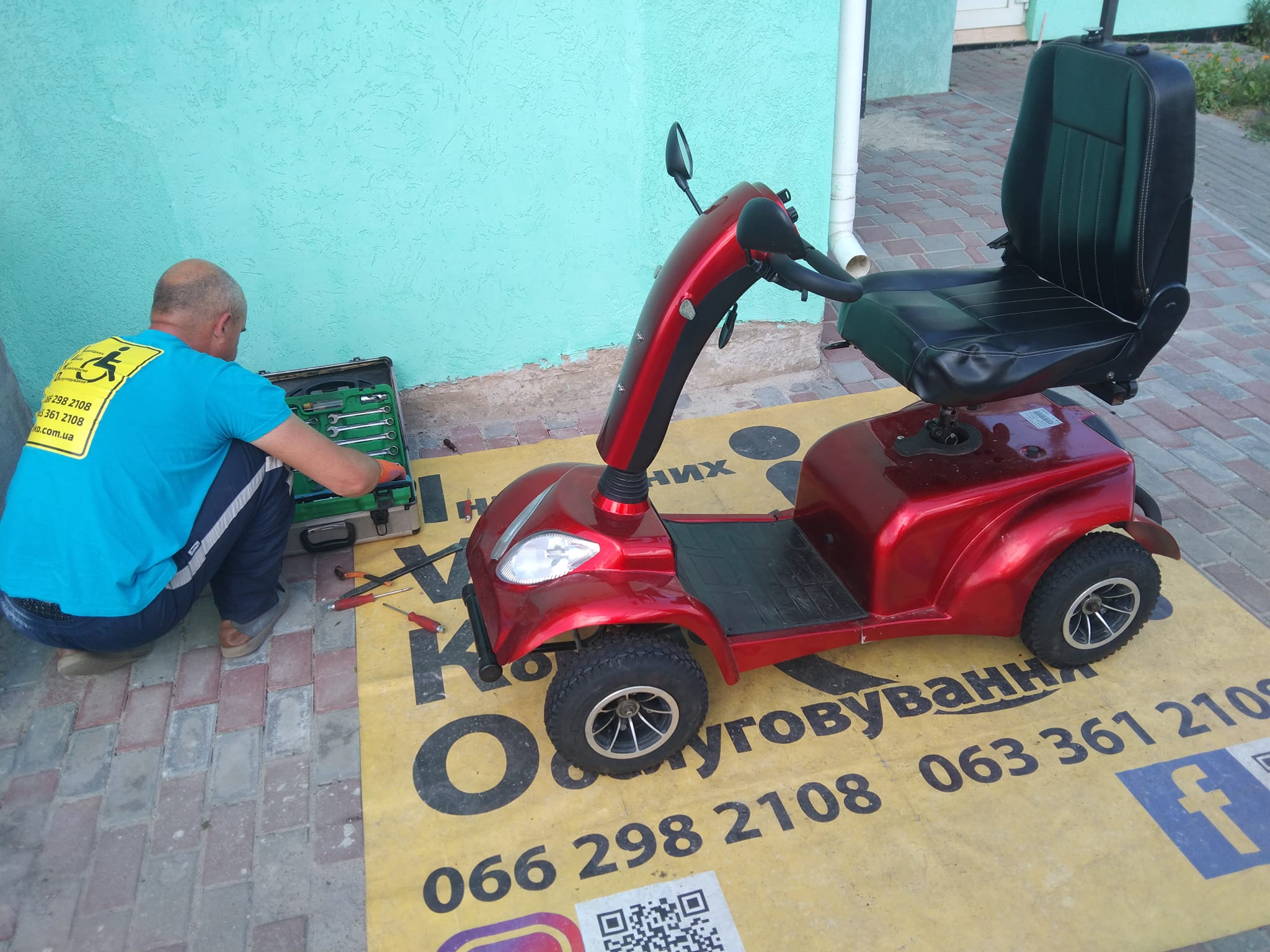 Різні електричні візки і скутера привезли в майстерню…