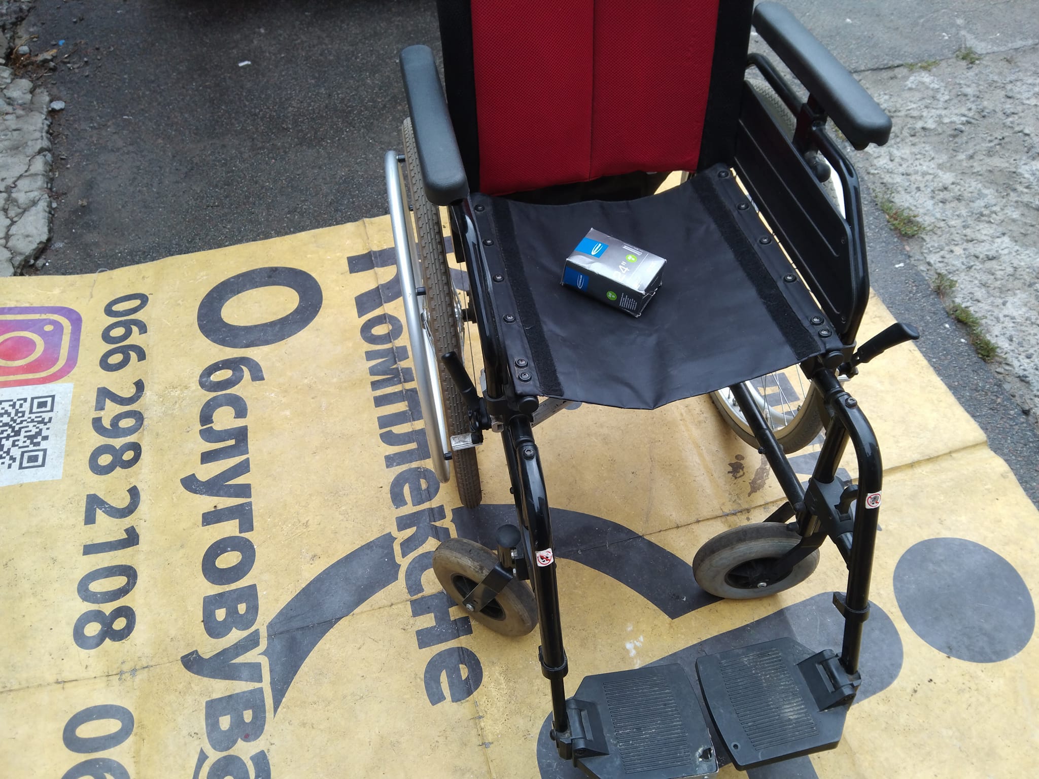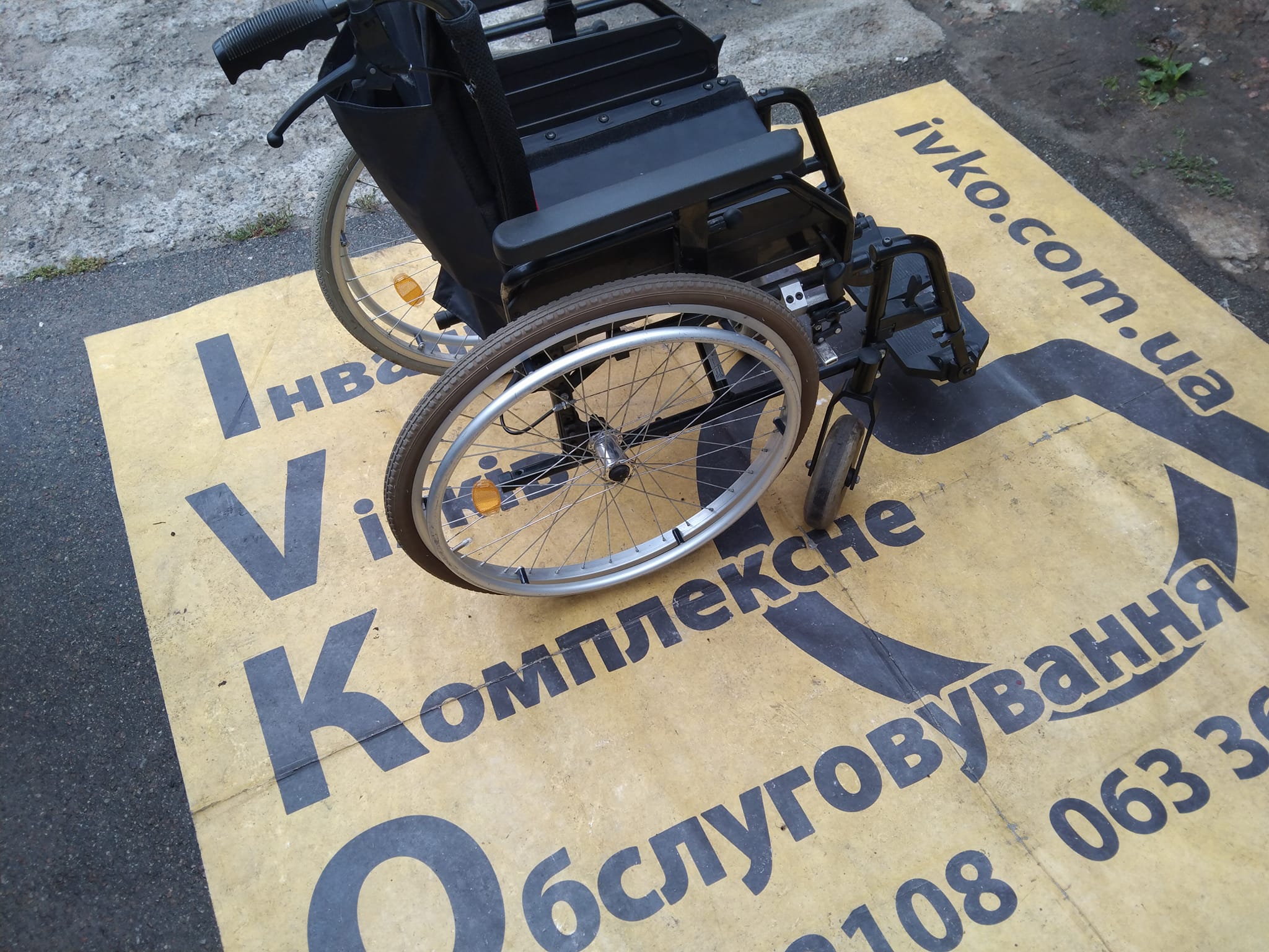 Сьогодні зранку нам в майстерню привезли на ремонт і обслуговування механічний інвалідний візок. Замінили камери задніх коліс, відремонтували стояночні гальма і провели повне обслуговування візка.