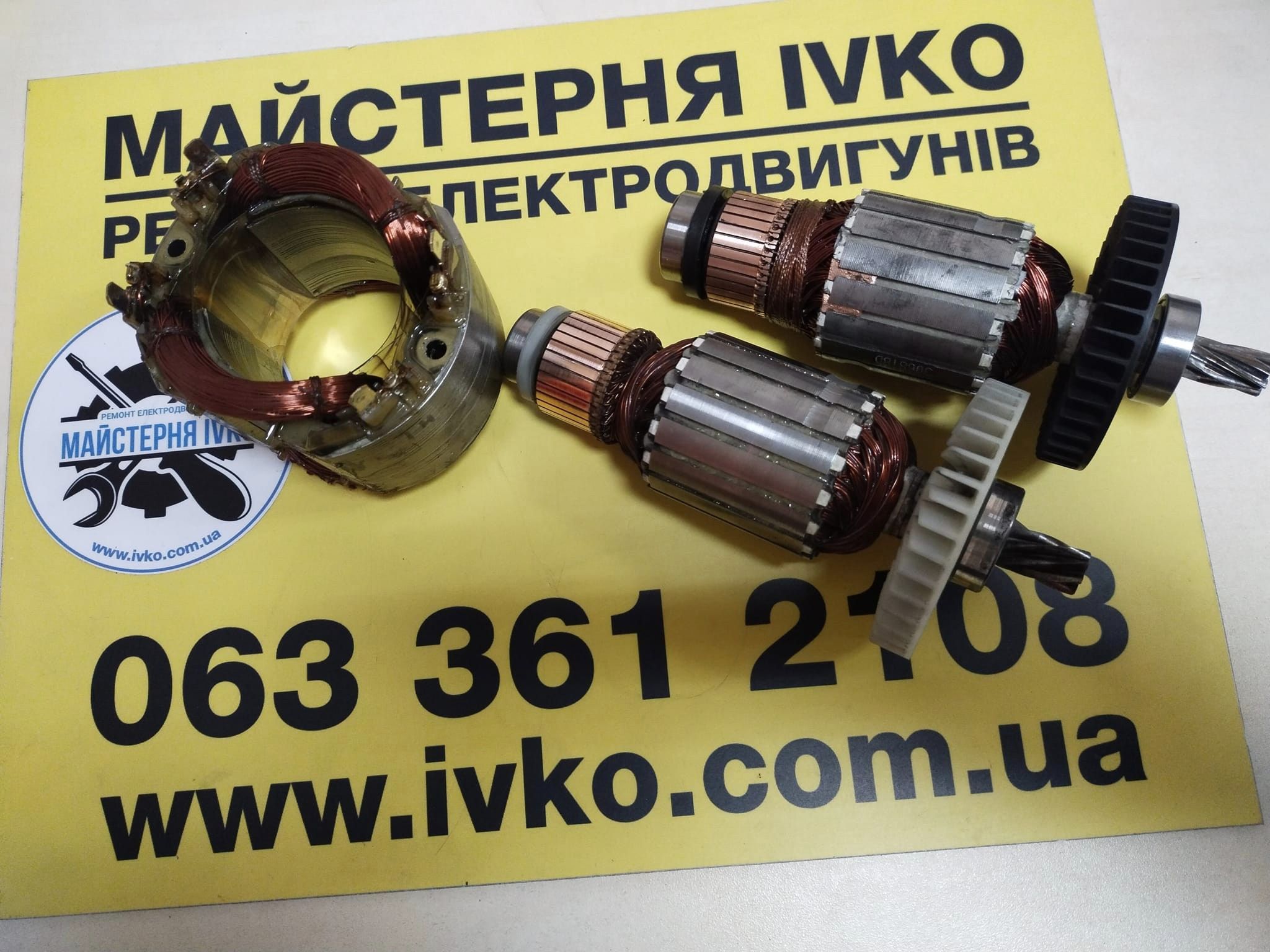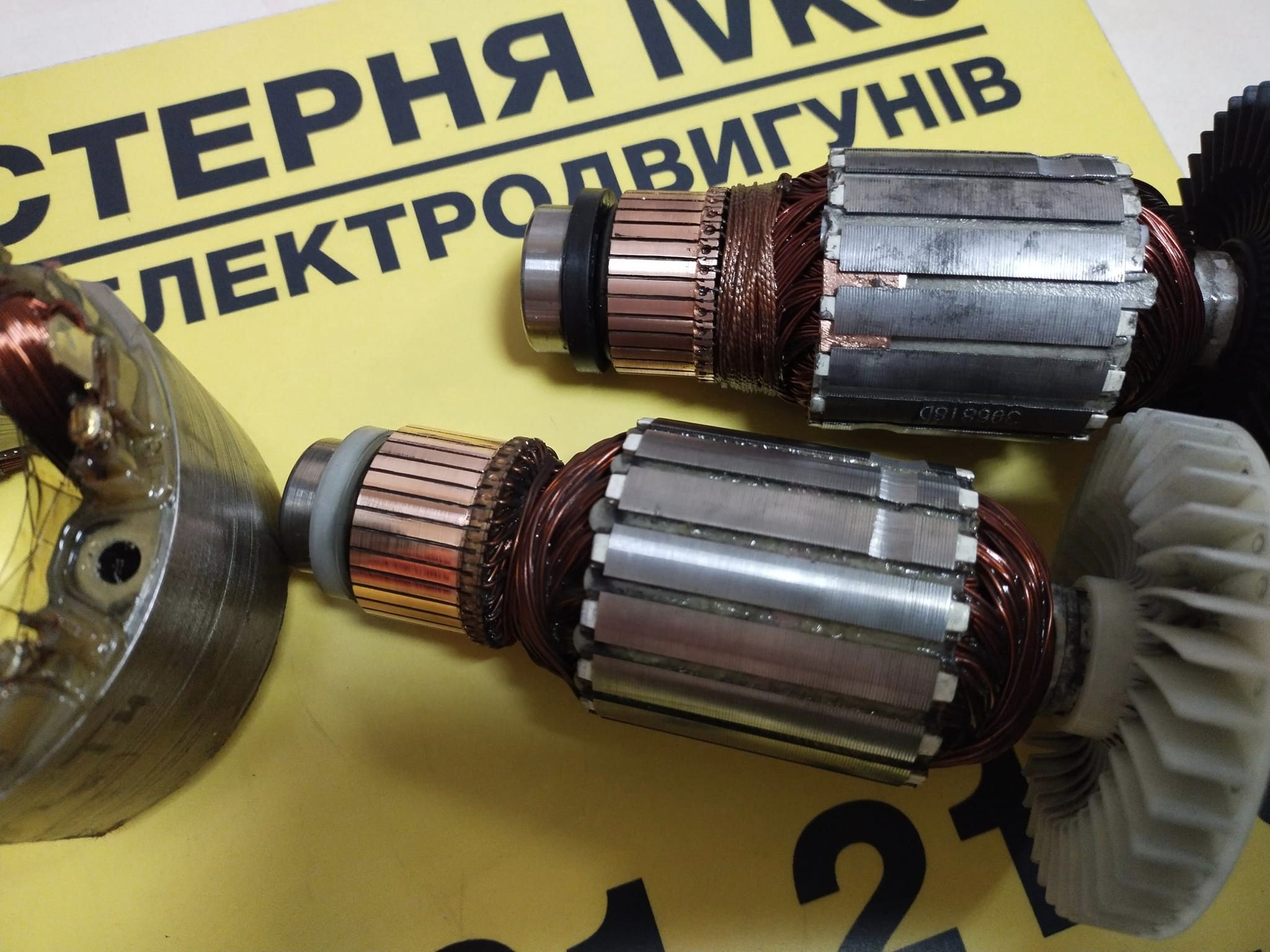 Намотали і відремонтували різні ротори і статори колекторних електродвигунів. І битових пристроїв і електроінструментів, також двигуни були в ремонті з скутерів для людей з інвалідністю і похилого віку і електродвигуни з автомобіля. На фото все є.