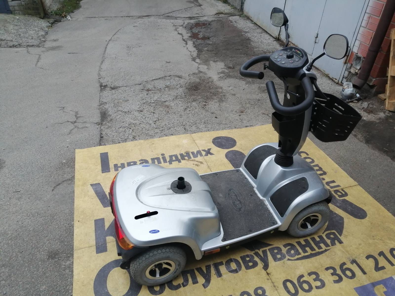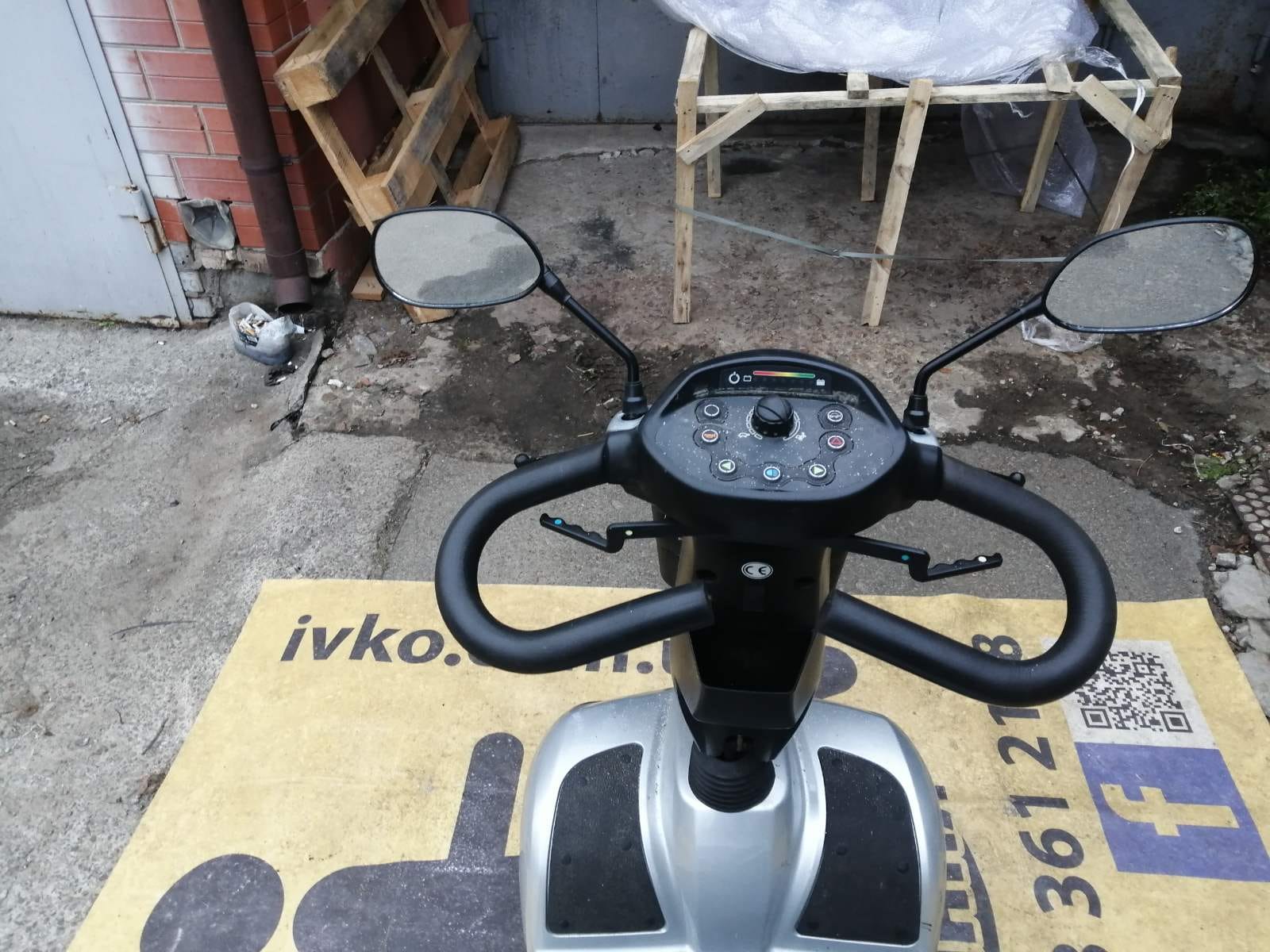 Новою поштою на ремонт і відновлення нам прислали скутер Invacare. Акумуляторів не має, зарядки не має, дзеркал не має, корзини не має, передніх гальм не має. Скутер не їде. Завдання було: хлопці запустіть скутер, дитині не має чим їздити.