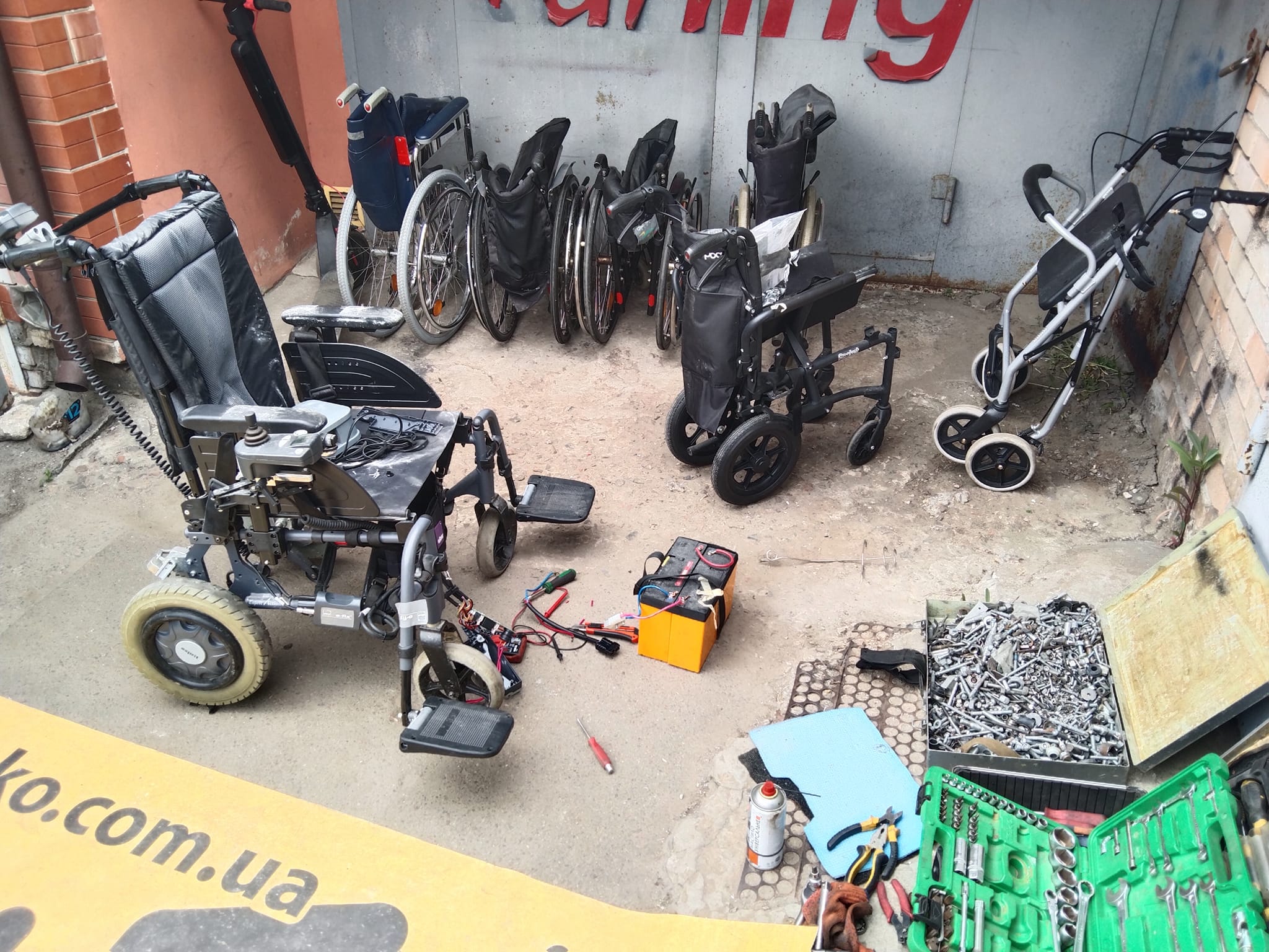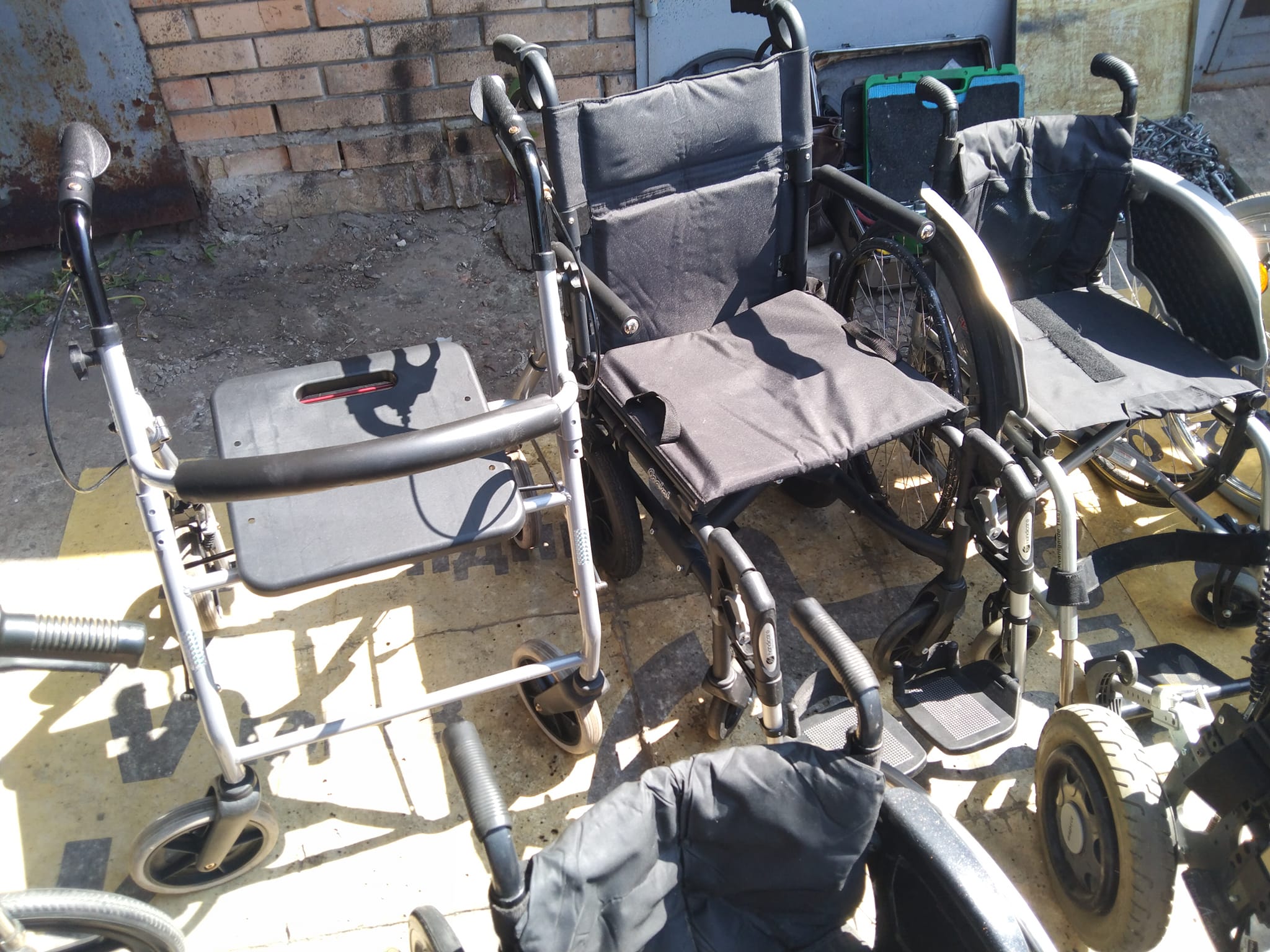Волонтери знову до нас в майстерню привезли на відновлення інвалідні коляски для госпіталю. Ходунки, механічні і одного електричного. Як завжди механічні візки без підніжок, підлокітників, коліс. Електричний візок, без акумуляторів і не має половини електроніки. Все зробили, запустили і віддали. Вже у наших хлопців…