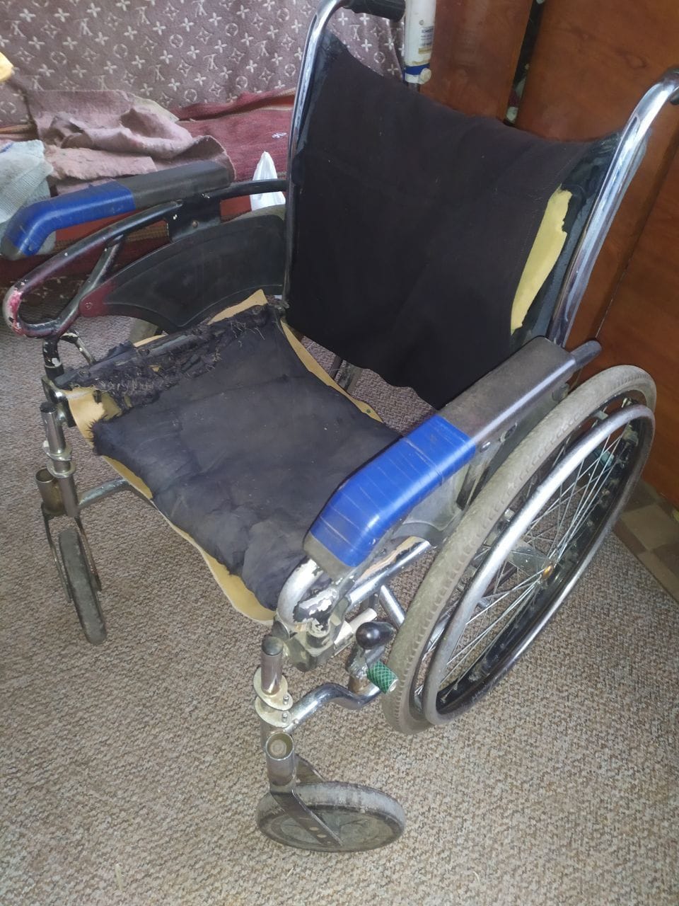 1. Нам на вайбер прийшли фото механічної інвалідної коляски (фото в якому стані візок є), і прохання відремонтувати і відновити. Домовилися що привезуть до нас в майстерню. Візок відремонтовано і відновили: відремонтували стояночні гальма, замінили підлокітники, замінили підшипники передніх вилок і передніх коліс, замінили задні шини, і пошили нові сидіння і спинку. І провели обслуговування візка.