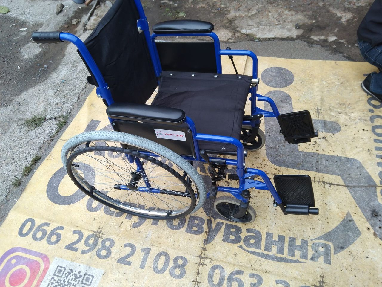 Відремонтовано простий механічний інвалідний візок. Замінено задні шини з камерами. Замінено підшипники передніх коліс. І відремонтовано раму.